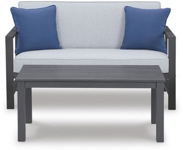 Signature Design by Ashley® Fynnegan 2-Piece Gray Outdoor Loveseat with Table Set